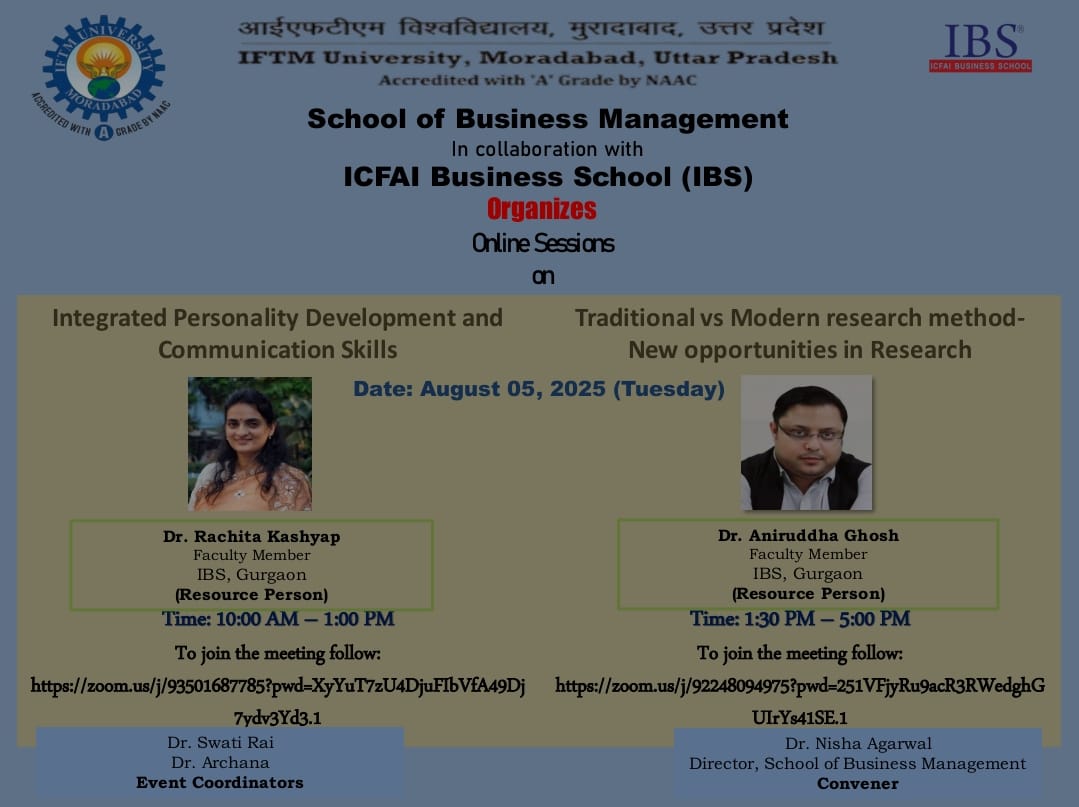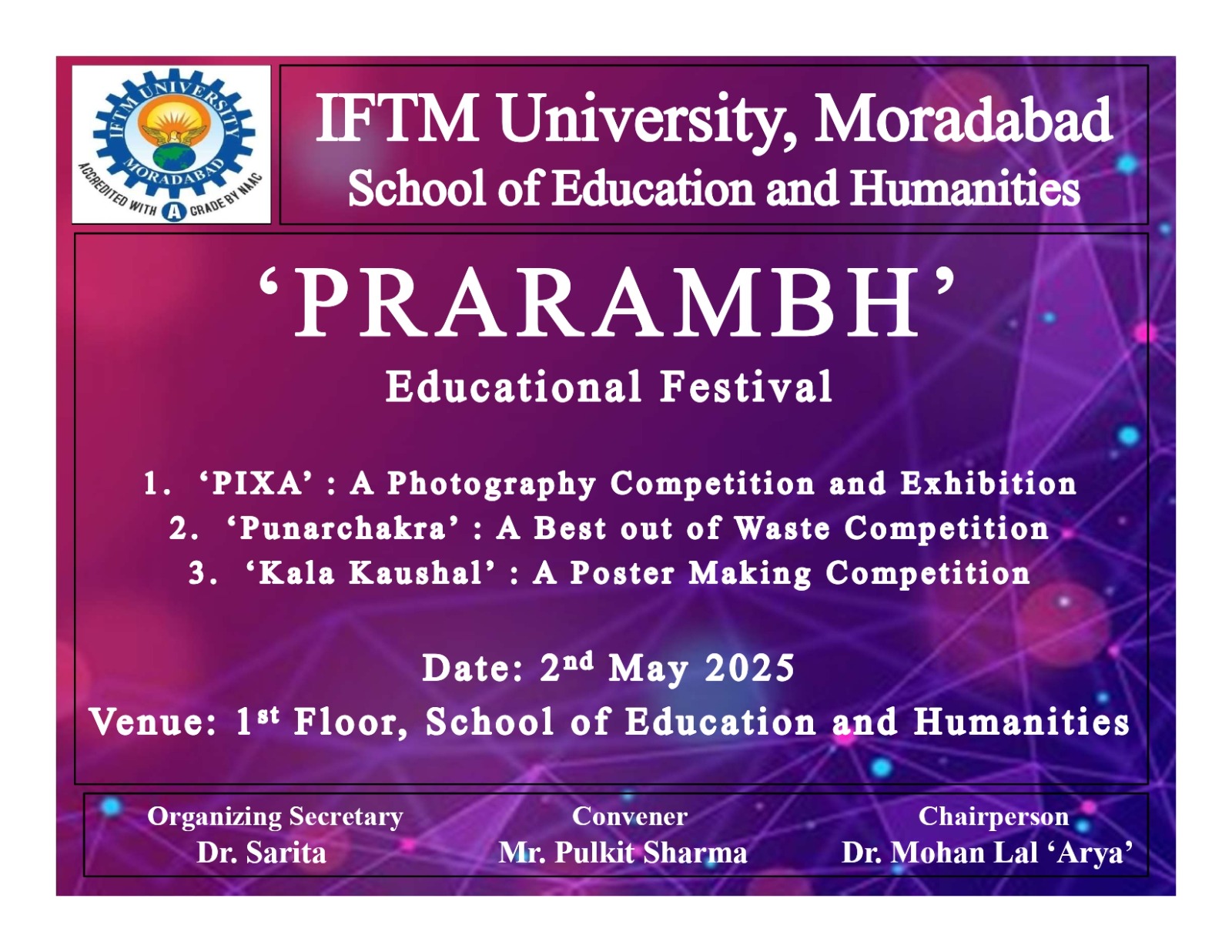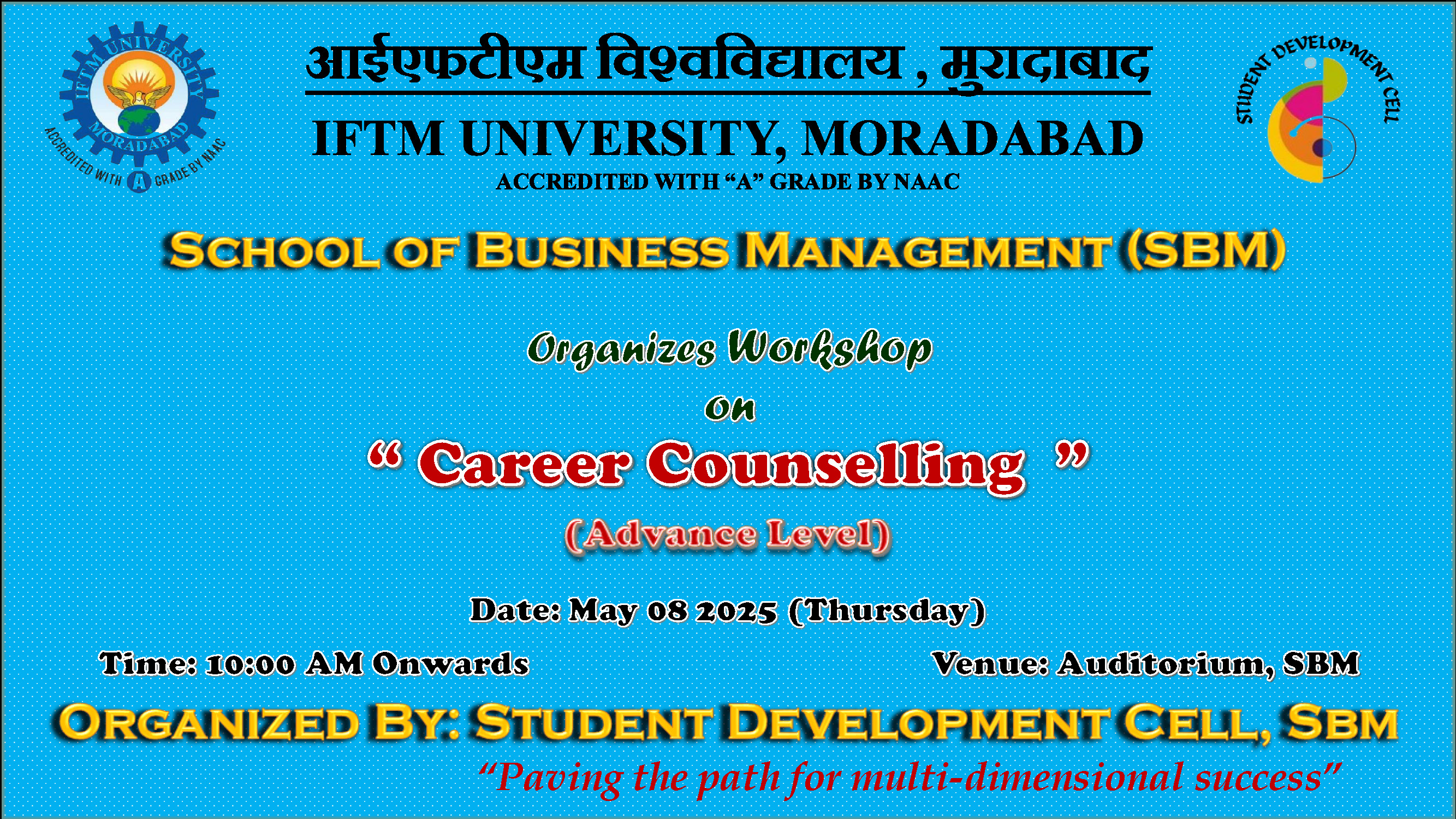IFTM University Provides an opportuniy to transform the mindset of its pupils by inculcating virtius and chiselling inherent qualities so that they become responsible citizens and leaders of tomorrow. Here they develop qualities such as courage, acumen, wit and enterprenaural craftmanship by organising Micro Teaching, Seminars, Debates, and Workshops along with live demonstration.