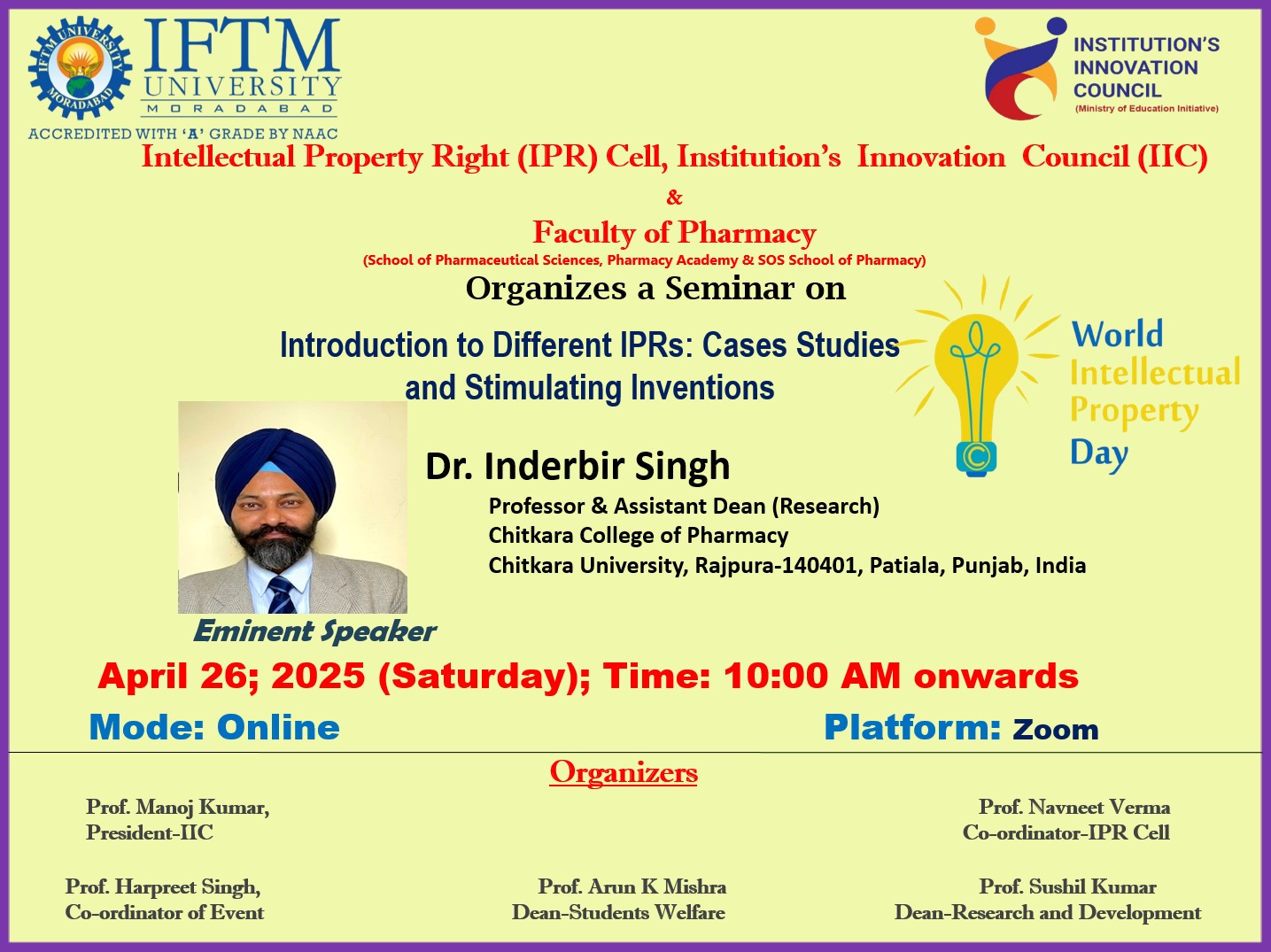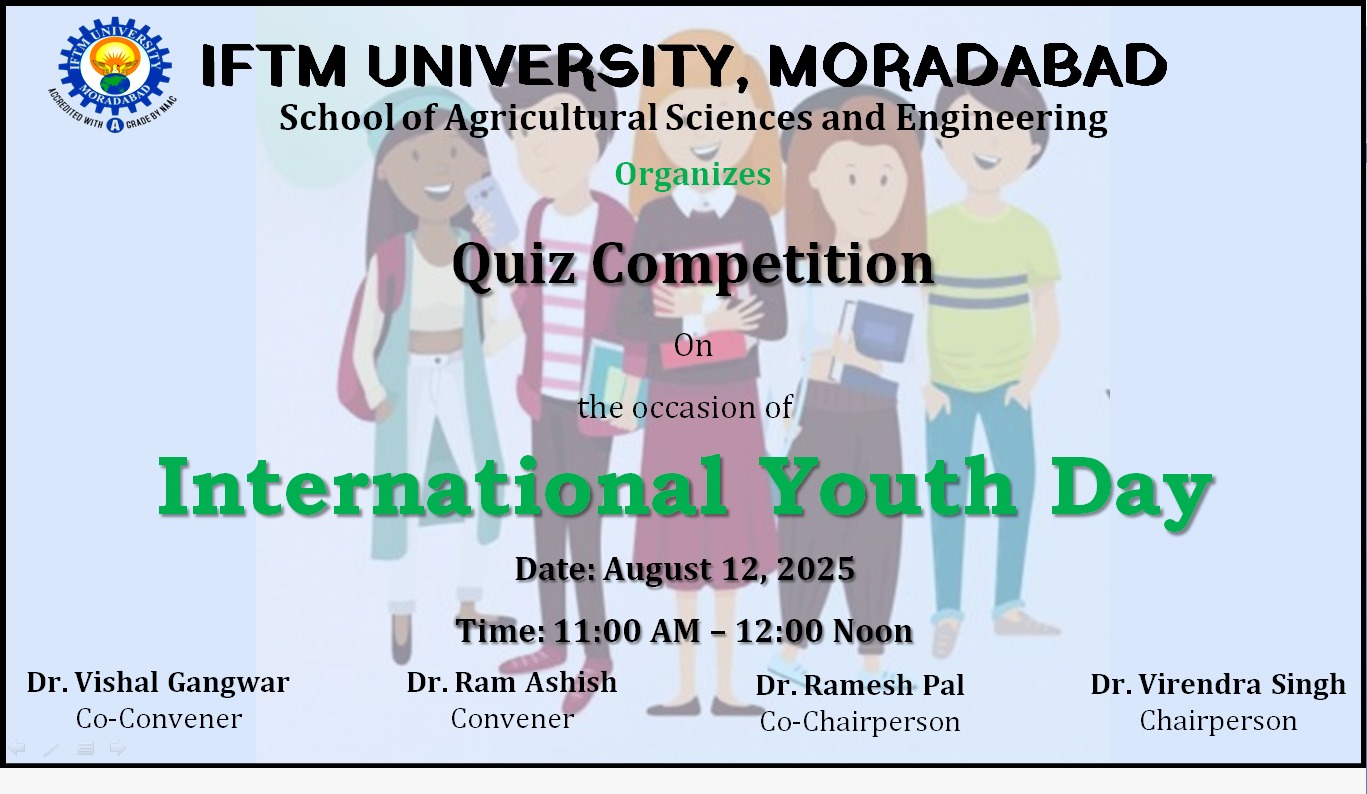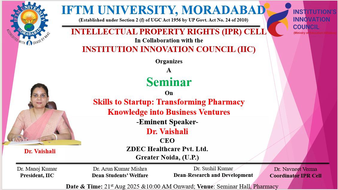 IFTM university is a place where we find mingling of learning, fun, culture, sports and many more life and personality brightening activities. I would like to thank my Pharmacy Academy department and its faculty members for encouraging me to think globally and to render help in shaping my career. The friendly attitude of the professors and their willingness to offer a helping hand has made me feel a part of the IFTM University family.