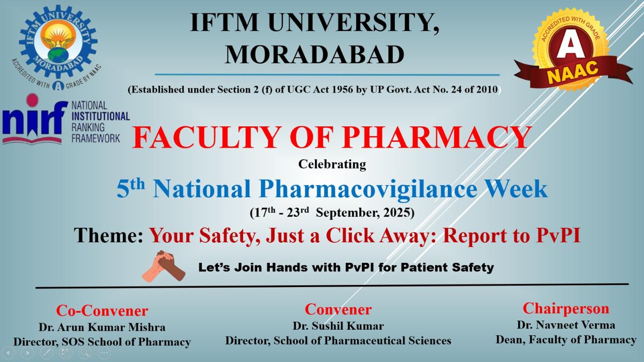 In IFTM University, there is a good environment for the students. The university provides various facilities which help us to learn many things. It not only provides us with various platforms to showcase our abilities and skill but also helps us to learn all soft skills that are highly required. We get training on interview skills, communication skills, life skills, effective time management and many more. Being on the verge of completing 4th year, I would like to thank my university for providing a perfect stepping stone for the first phase of my career. The Pharmacy Academy department is having intellectual, supportive and experienced faculties. They are very much considerate in dealing with the problems of students. They provide opportunities for academic discussions. It"s is all because of them that I am full of confidence and have a strong career foundation.