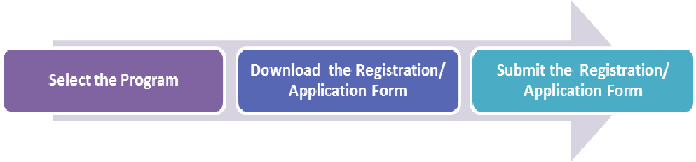 After selecting the program, candidate has to register himself/ herself for the selected program. After registration in the selected program, final confirmation will be done by submitting the application form along with required documents. For downloading the Registration/ Application form click here